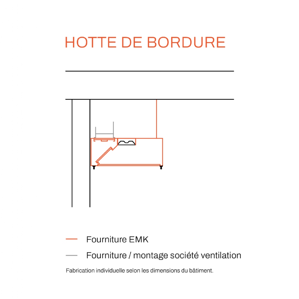 C’est pourquoi les hauteurs de montage indiquées dans nos esquisses cotées doivent être considérées comme des hauteurs minimales pour la ventilation. Tout écart dû à des contraintes de construction doit être discuté avec EMK.